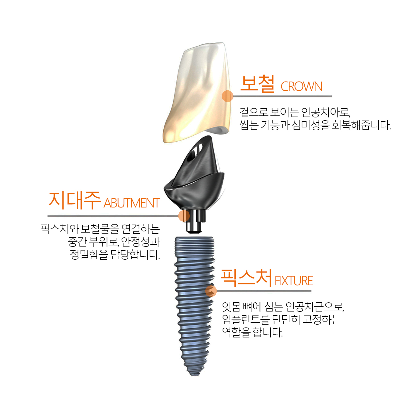 일반적인 임플란트는 발치 후 잇몸이 회복된 뒤 임플란트를 식립하고, 임시 보철물을 거쳐 최종 보철물을 완성하는