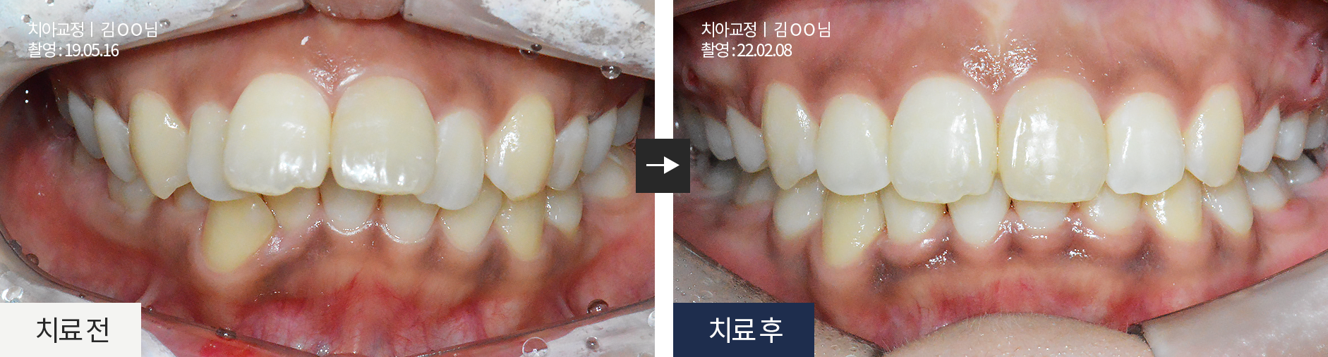 치아 이동 상태와 교합을 정밀하게 점검받으며 치료가 이루어집니다.